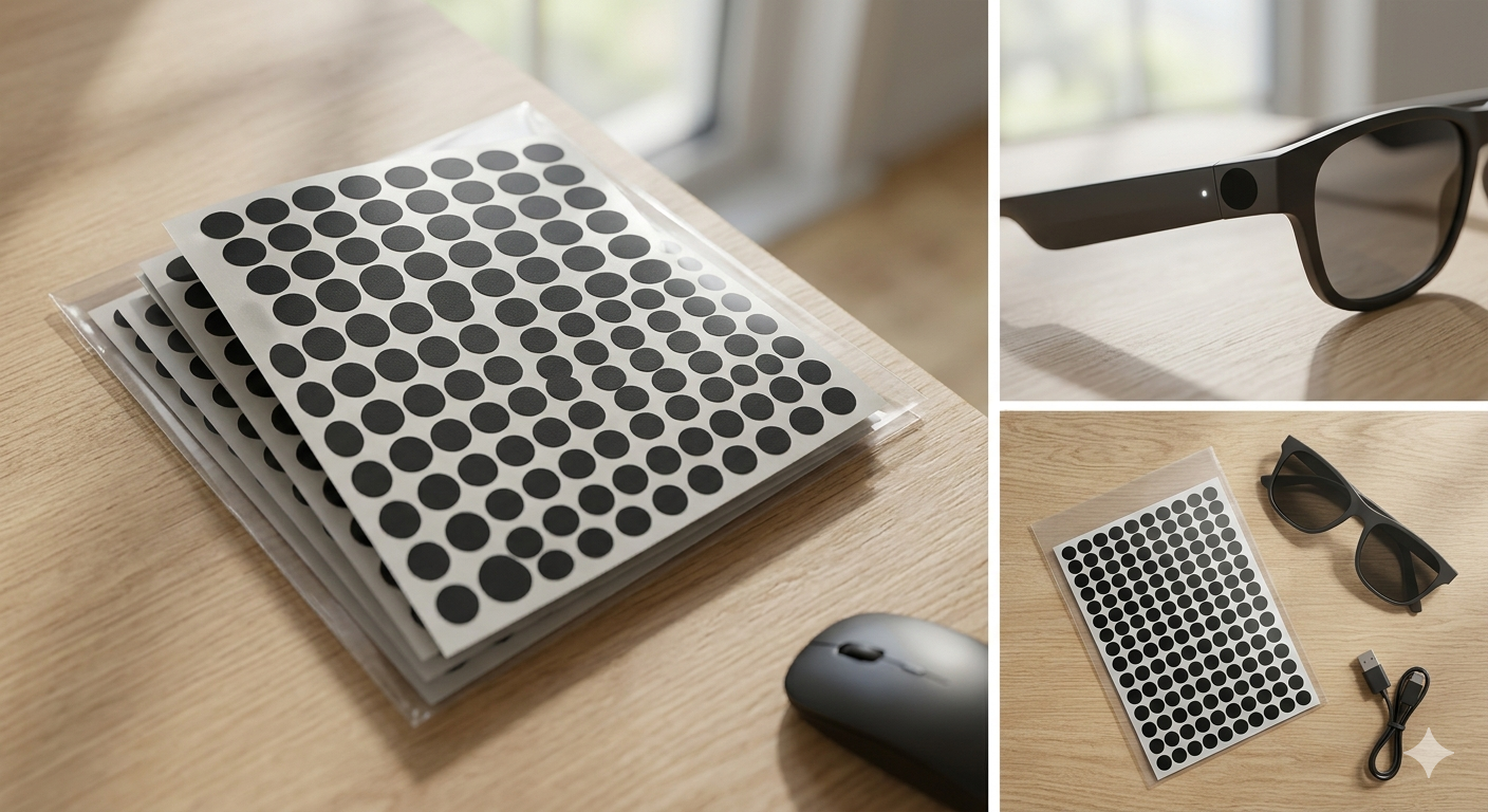 The 100PCS Full Blackout LED Light Blocking Stickers for Ray-Ban are precision-cut adhesive pads designed to block unwanted light leakage from LED indicators on your sunglasses or smart glasses. Made from durable, high-quality material, these stickers ensure a clean, full blackout effect without damaging your frames. Easy to apply and remove, they provide a discreet solution for improving focus, reducing distractions, or maintaining a sleek, uniform appearance. Ideal for daily use or photography settings, this pack offers a simple and effective way to enhance your Ray-Ban experience.