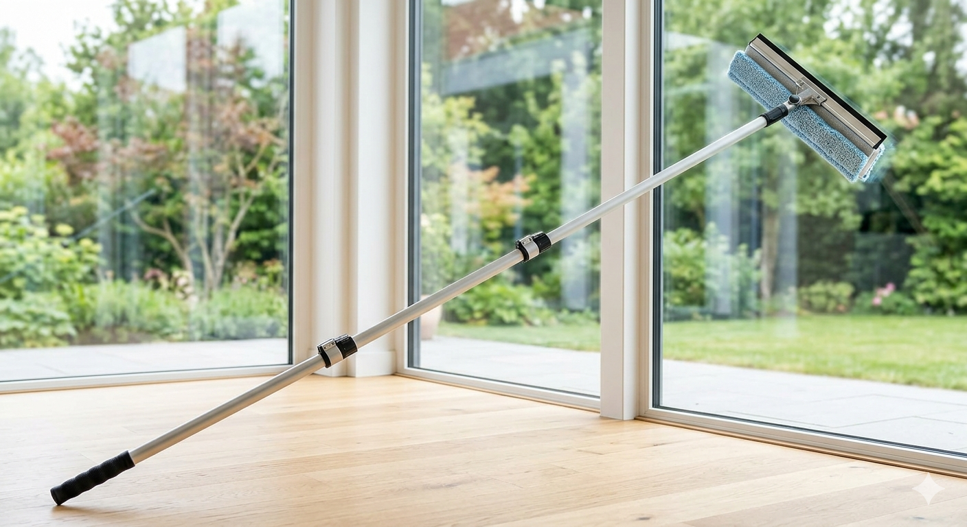 The 26FT Window Squeegee with Extension Pole is designed to make high and hard-to-reach window cleaning effortless and safe without the need for ladders. Featuring a long, adjustable telescoping pole, it allows you to clean second-story windows, exterior glass, solar panels, and other elevated surfaces with ease. The dual-function head typically combines a durable rubber squeegee for streak-free drying with a microfiber scrubber that effectively removes dirt, dust, and grime. Its lightweight yet sturdy construction ensures comfortable handling while maintaining stability during extended use. Ideal for both indoor and outdoor cleaning, this versatile tool helps you achieve professional-quality results, saving time and reducing strain during household or commercial cleaning tasks.