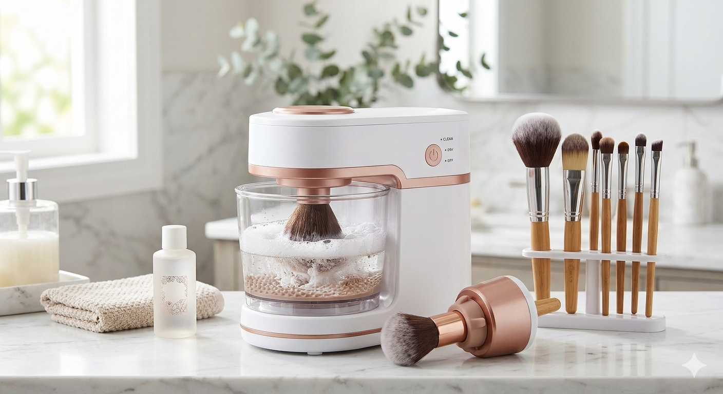 The 3-in-1 Electric Makeup Brush Cleaner is a versatile beauty tool designed to clean, dry, and maintain your makeup brushes effortlessly. Its powerful motor and multiple brush size adapters ensure a thorough cleanse for all types of brushes, removing makeup residue and bacteria in minutes. The device features a convenient spinning mechanism that gently washes and dries brushes without damaging bristles, saving time and improving hygiene. Compact and easy to use, it is ideal for both home and professional use, keeping your brushes in perfect condition for flawless makeup application every time.