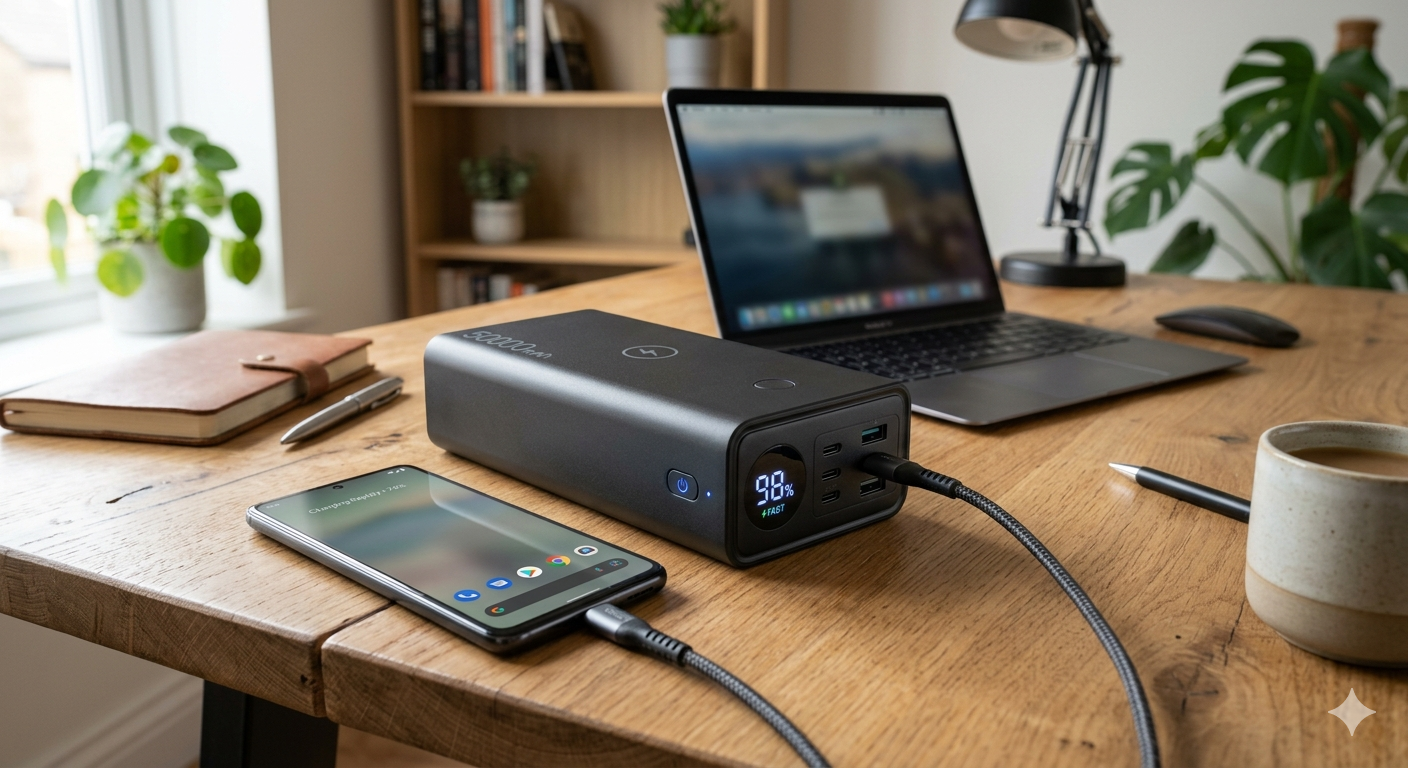 This 50,000mAh fast charging power bank is designed for users who need long-lasting, reliable backup power for multiple devices on the go. With its ultra-high capacity, it can charge smartphones, tablets, wireless earbuds, and other USB-powered gadgets several times before needing a recharge itself. It supports fast charging technology, helping reduce charging time while maintaining stable power output to protect your devices from overcurrent and overheating. Equipped with multiple USB ports, it allows simultaneous charging of more than one device, making it ideal for travel, outdoor activities, and emergency use. The built-in safety features, including short-circuit and temperature protection, ensure safe and efficient performance, while its durable design makes it a dependable everyday power solution.