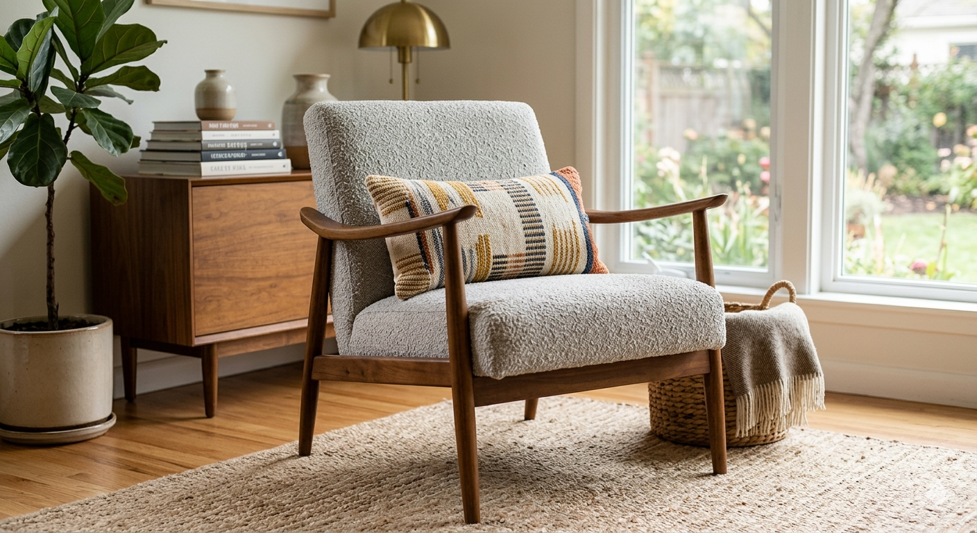 The Accent Chair Mid-Century Modern with Lumbar Pillow combines timeless style with everyday comfort, making it a perfect addition to living rooms, bedrooms, or reading corners. Designed with clean lines and a classic mid-century silhouette, this chair features a sturdy wooden frame and durable upholstery that adds both elegance and support. The soft cushioned seat and included lumbar pillow provide extra comfort for relaxing, reading, or chatting with guests. Its compact yet stylish design blends easily with modern, contemporary, or minimalist décor, while the solid legs ensure stability and long-lasting use. Ideal for small spaces or as a statement piece, this accent chair brings both charm and functionality to any home.