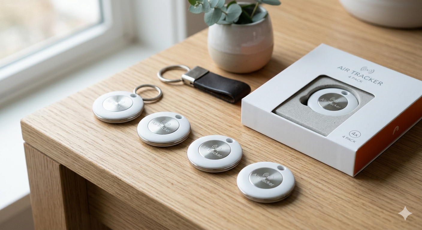 Air Tracker Tags-4 Pack is a set of compact Bluetooth tracking devices designed to help you keep track of everyday essentials like keys, wallets, bags, and luggage. Each tag connects to your smartphone through a companion app, allowing you to locate misplaced items with real-time tracking or trigger a sound to find them quickly. The trackers feature a lightweight, durable design with long-lasting batteries and reliable wireless range for daily use. Ideal for families or frequent travelers, this four-pack provides multiple tags so you can conveniently monitor several items at once and enjoy added peace of mind.