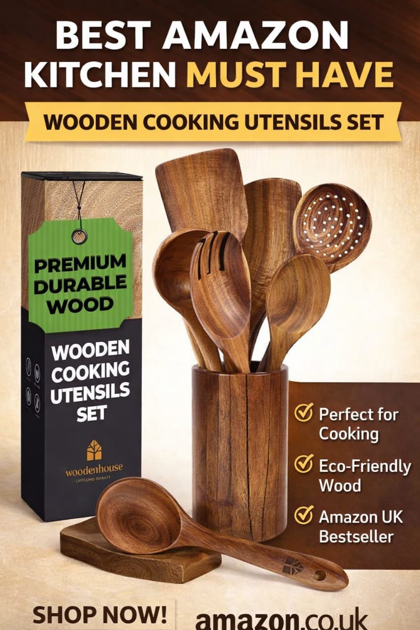 This wooden cooking utensils set is perfect for everyday cooking. Made from natural wood, it is safe for non-stick cookware and helps protect your pans from scratches.