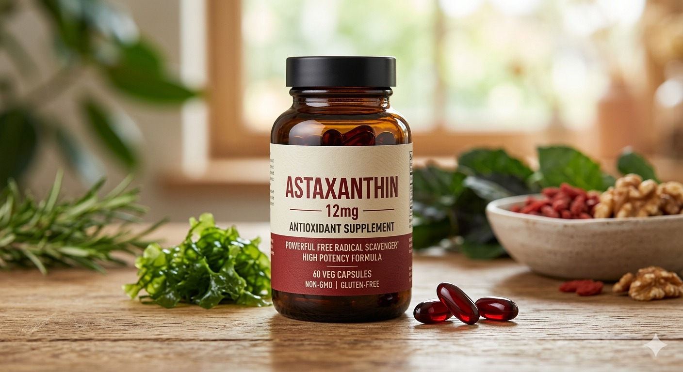Astaxanthin 12mg Antioxidants Supplement is a powerful dietary supplement designed to support overall health and wellness by providing a potent dose of astaxanthin, a naturally occurring antioxidant known for its ability to help protect cells from oxidative stress. Sourced from microalgae, this supplement may help support skin health, promote eye and heart health, boost immune function, and assist in reducing fatigue after physical activity. With its strong antioxidant properties, Astaxanthin 12mg is often used to support healthy aging, improve skin appearance, and help maintain overall vitality when taken as part of a balanced lifestyle.