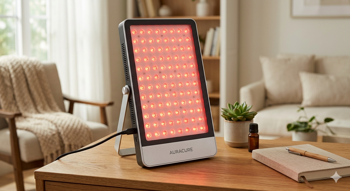 AuraCure LED Red Light Therapy Panel is a compact and efficient wellness device designed to support skin rejuvenation, muscle recovery, and overall relaxation using targeted red and near-infrared light technology. It delivers consistent, non-invasive light therapy that helps stimulate collagen production, reduce the appearance of fine lines, and ease muscle soreness after workouts. The panel features high-quality LEDs, adjustable brightness levels, and a user-friendly design that allows for easy placement at home or in a personal wellness setup. With its durable build, low heat emission, and energy-efficient performance, the AuraCure panel offers a convenient way to incorporate professional-style light therapy into daily self-care routines.