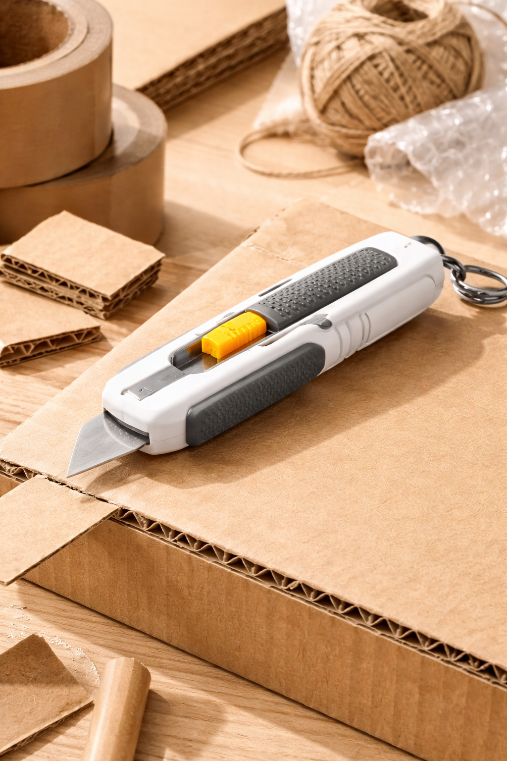 Cardboard Cutter is a compact and efficient cutting tool designed for smooth and precise cutting of cardboard, paper, plastic sheets, and packaging materials. Built with a sharp, durable blade and a sturdy handle, it allows controlled cutting with minimal effort while reducing hand fatigue. Its ergonomic, non-slip grip ensures safety and comfort during repeated use, making it suitable for home, office, warehouse, and DIY tasks. Lightweight yet strong, this cutter delivers clean cuts and reliable performance, making it an essential tool for everyday packing, crafting, and unpacking needs.