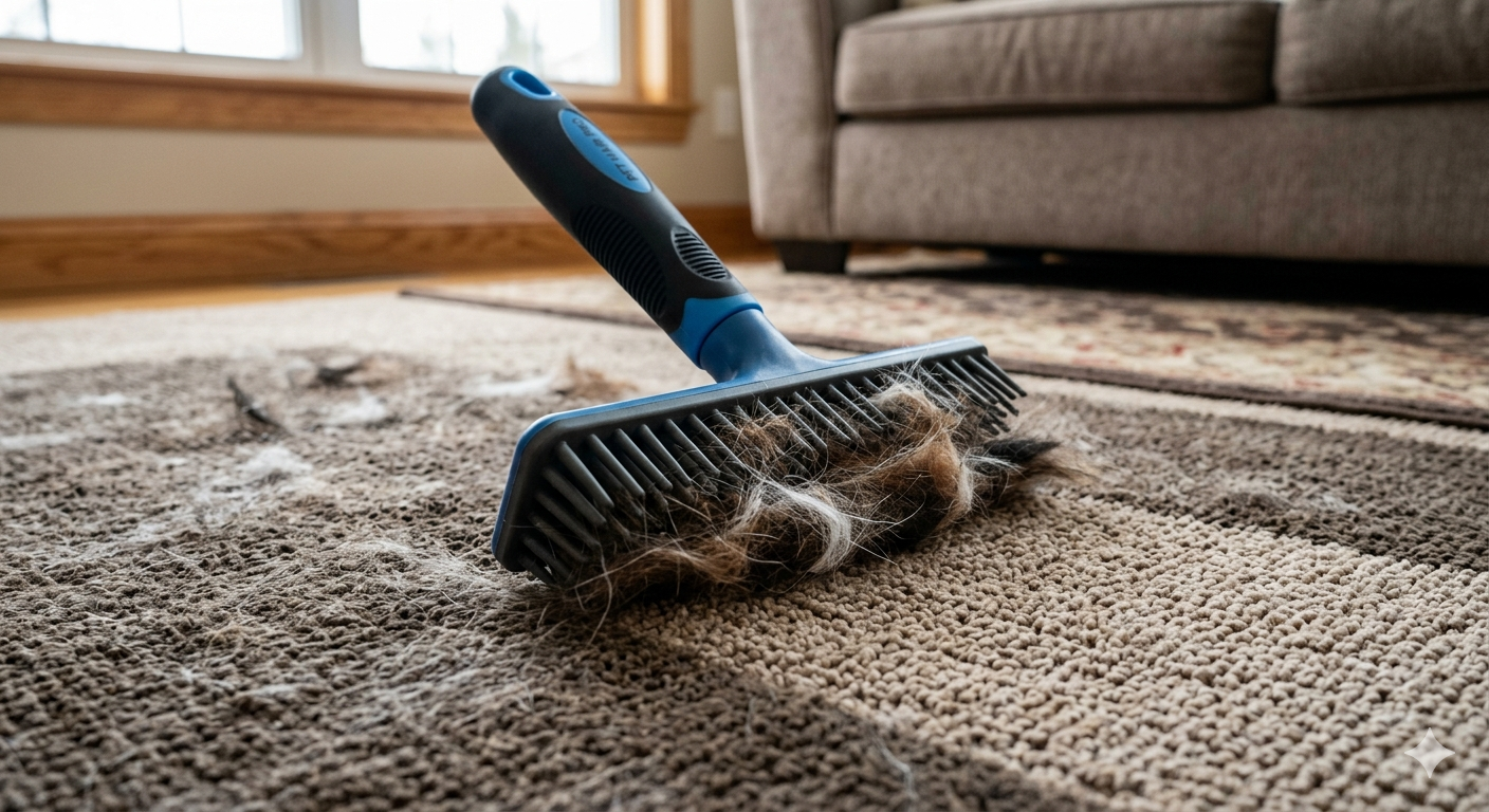 The Carpet Rake for Pet Hair Removal Tool is a durable, ergonomically designed grooming and cleaning accessory that effortlessly lifts embedded pet hair from carpets, rugs, and upholstery. Its stiff, specially crafted bristles reach deep into fibers, loosening hair, dander, and debris without damaging surfaces. Lightweight and easy to handle, it allows for efficient cleaning in both small and large areas, making it ideal for pet owners who want to maintain a hair-free home with minimal effort. Regular use also helps prevent matting in carpets and keeps living spaces fresh and tidy.