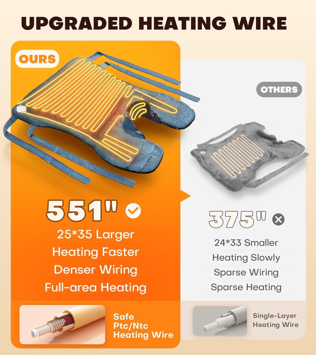 • 30% HEAVIER, LARGER, ALL FOR OPTIMAL COMFORT! It’s time to leave behind those stiff, ill-fitting heating pads! Lenmen not only offers an enlarged design but also adds warm, weighted beads across the whole upper back, providing broader coverage and a more comfortable fit. Unlike blankets with single-direction wiring, we combine vertical and horizontal wiring for denser, more even warmth while staying soft enough to wrap naturally around your back, waist, legs, and arms. Enjoy cozy comfort while the rest of the world shivers!