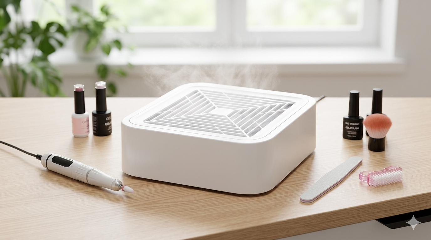 The Nail Dust Collector is a compact, high-efficiency device designed for professional and home nail care. It features a powerful suction system that effectively captures dust and debris generated during filing, buffing, and acrylic or gel nail applications, keeping workspaces clean and hygienic. Equipped with a quiet yet durable motor, it operates smoothly without disturbing clients or users. Its ergonomic design ensures comfort during use, while the easy-to-clean dust compartment allows for quick maintenance. Ideal for salons and personal use, it helps maintain a tidy environment and promotes healthier air quality during nail treatments.