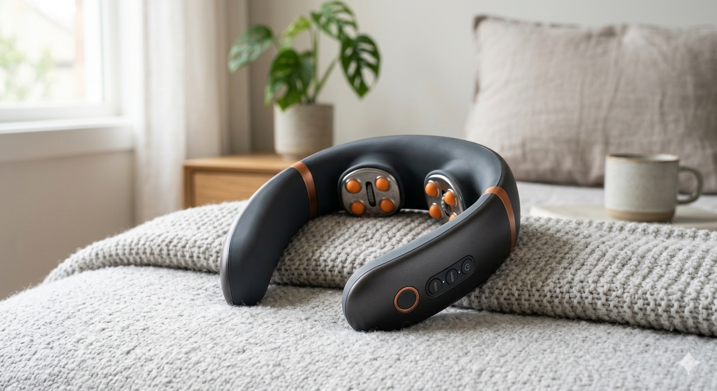 Neck Massager is a relaxation device designed to relieve tension, stiffness, and soreness in the neck and shoulder area through gentle massage and soothing pressure. It often features multiple massage modes such as kneading, vibration, or heat therapy to improve blood circulation and reduce muscle fatigue after long hours of work or travel. Ergonomically shaped to fit comfortably around the neck, it provides targeted relief while being easy to use at home, in the office, or on the go. Lightweight and portable, it helps promote relaxation, reduce stress, and enhance overall comfort.