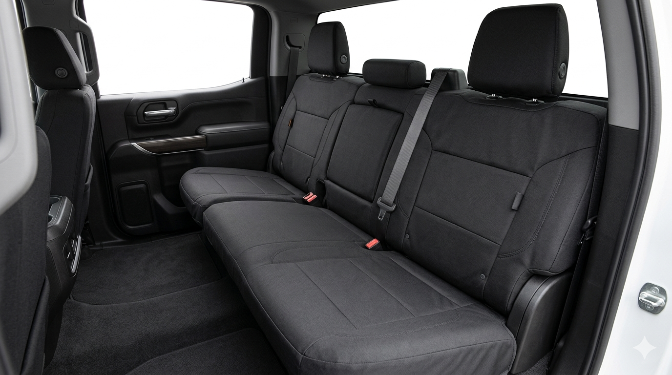 The Oxford Rear Seat Covers for Chevy Silverado and GMC Sierra are heavy‑duty protective covers designed to shield your truck’s rear seats from spills, dirt, pet hair, and daily wear. Made from durable Oxford fabric, they resist stains and are easy to clean, while offering a snug fit that complements the interior without interfering with seat functions. With secure attachment straps and thoughtful cutouts for seat belts and anchors, these covers combine practical protection with everyday comfort. Whether you’re hauling gear, traveling with pets, or just want to keep your seats looking new, they’re a reliable accessory for your pickup.