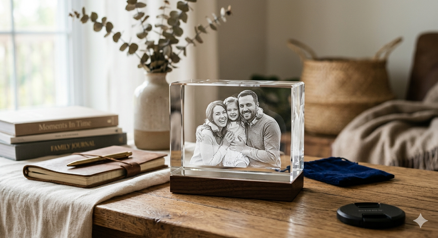 Capture your most cherished memories in stunning detail with this Personalized 3D Crystal Photo. Crafted from premium optical crystal, it transforms your favorite photo into a lifelike 3D laser-etched image that appears to float within the crystal. Perfect as a unique gift or a timeless keepsake, it elegantly showcases moments from weddings, anniversaries, birthdays, or special occasions, reflecting light beautifully from every angle. With its sleek, clear design and customizable engraving options, this crystal turns any memory into a dazzling display of art and sentiment.