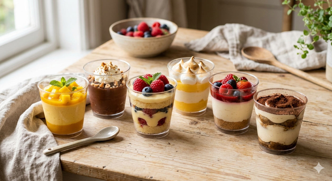 Plastic dessert cups are a convenient and stylish way to serve a variety of sweet treats at parties, events, or everyday gatherings. Made from durable, food-grade plastic, these cups are perfect for presenting desserts like pudding, mousse, parfaits, fruit salads, ice cream, and mini cakes while keeping portions neat and attractive. Their clear design allows the colorful layers of desserts to be beautifully displayed, adding an elegant touch to any table setup. Lightweight and easy to handle, they are also disposable or reusable depending on the type, making cleanup quick and hassle-free. Ideal for birthdays, weddings, catering events, and family celebrations, plastic dessert cups combine practicality with a visually appealing presentation.
