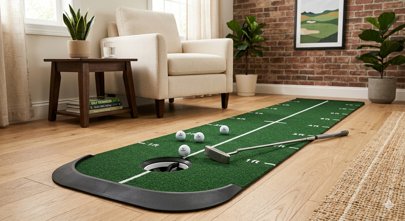 An indoor putting green is a compact practice mat designed to help golfers improve their putting skills from the comfort of home or office. It typically features a realistic turf surface that mimics the roll of a real green, along with alignment guides to support accuracy and consistency. Many models include built-in cups, automatic ball return systems, or slight slopes to simulate real course conditions and enhance training. Lightweight and easy to roll out or store, an indoor putting green is ideal for daily practice, helping players refine distance control, aim, and confidence without needing to visit a golf course.