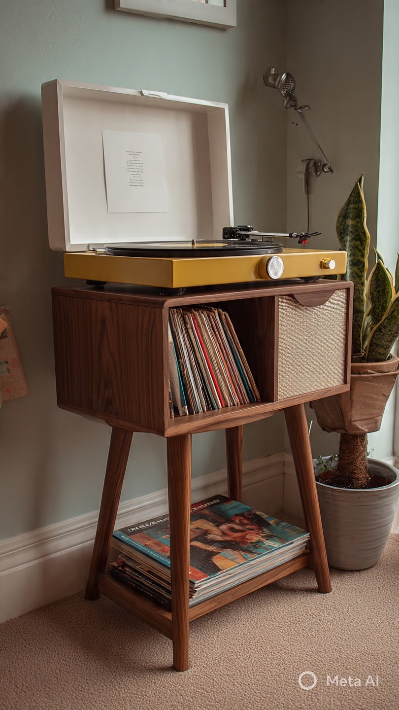 This record player stand with vinyl storage is a practical and stylish way to keep your turntable and record collection organized in one place. Designed with a sturdy top for your record player and dedicated shelves or cubbies for vinyl records, it keeps everything within easy reach while protecting your collection. The solid construction provides stability and reduces vibration for better sound quality, while the clean, modern design fits well in living rooms, bedrooms, or music corners. It is a space saving solution that combines storage and display, making it easy to enjoy your records while keeping your setup neat and visually appealing.