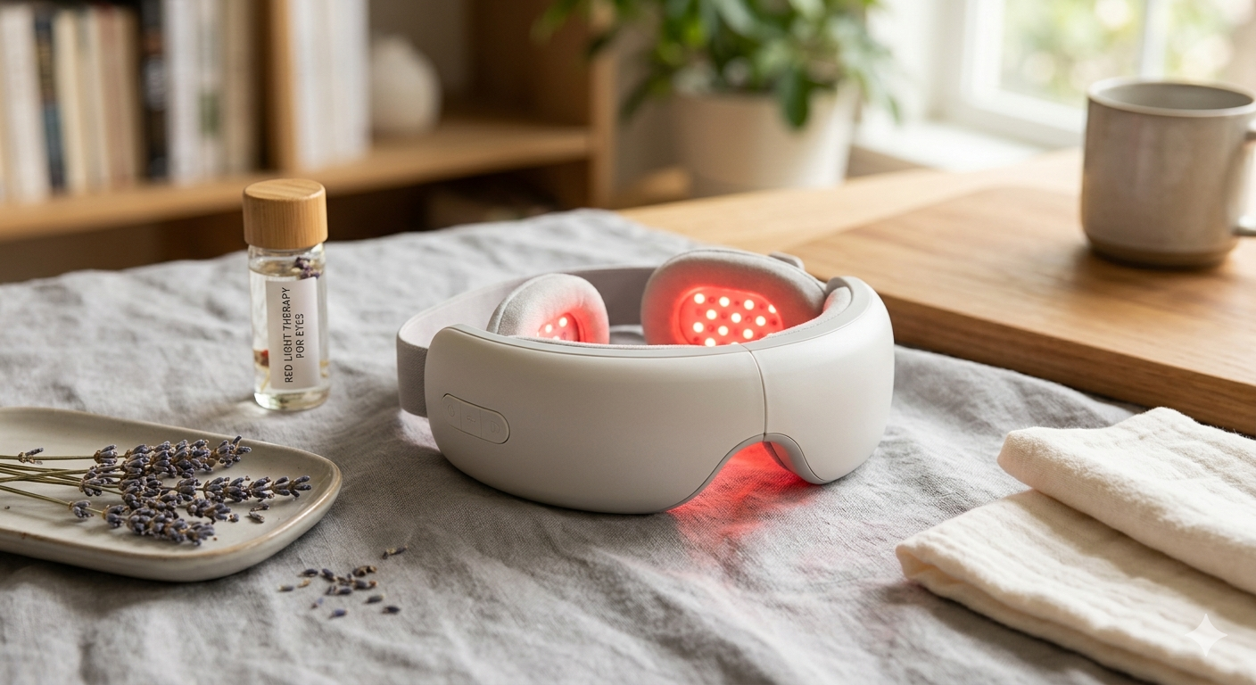 The Red Light Therapy for Eyes device uses low-level red and near-infrared light to support eye health and reduce eye strain. Designed to be safe and gentle, it helps improve blood circulation around the eyes, relieve fatigue from prolonged screen use, and promote cellular regeneration. Compact and wearable, it offers convenient sessions at home, with adjustable settings for intensity and duration. Regular use may help enhance visual comfort, reduce dryness and puffiness, and support overall eye wellness.