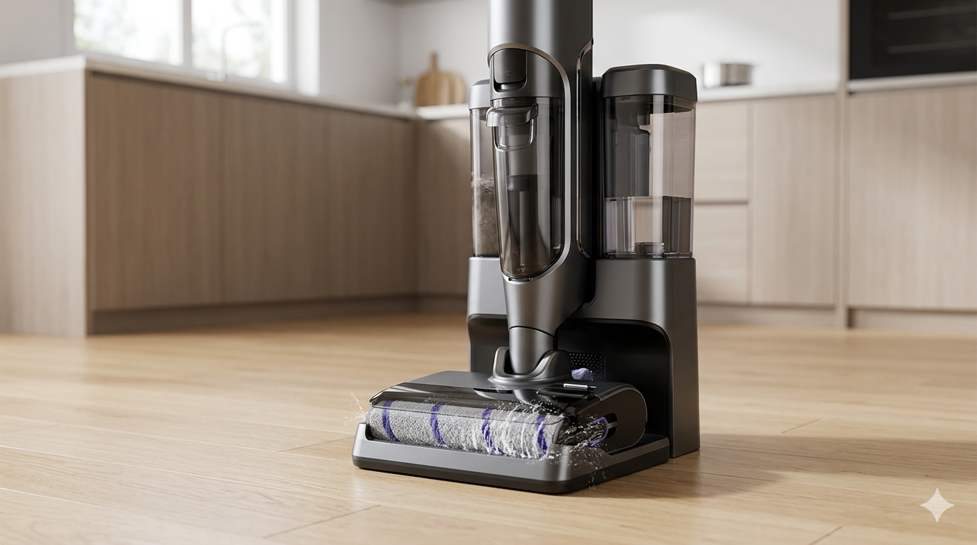 The Narwal S20 Pro Cordless Vacuum Mop with Self-Cleaning is a powerful 2-in-1 wet and dry cleaning solution that vacuums and mops floors simultaneously, featuring up to 20,000Pa suction and smart AI DirtSense technology that automatically adjusts cleaning power based on detected dirt levels. It includes a one-button self-cleaning dock that flushes the brush and internal tubing, followed by hot-air drying to prevent odors and bacteria buildup, making maintenance easier and more hygienic. Designed for convenience, it offers cordless operation with up to 60 minutes of runtime, edge-to-edge cleaning, and a 180° flat-reach design to clean under furniture effortlessly, while the self-propelled drive and quiet operation improve maneuverability and comfort during use. Overall, the S20 Pro is built for efficient one-pass cleaning of both liquid spills and dry debris on hard floors, delivering a hands-free and time-saving home cleaning experience.