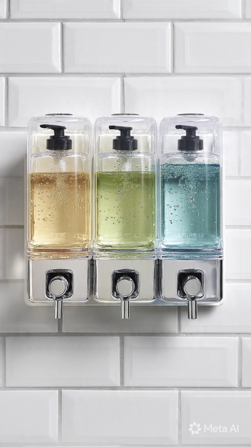 Keep your shower organized and clutter-free with this 3-chamber shampoo and conditioner dispenser, designed for convenience and a clean, modern look. The wall-mounted unit features three separate compartments, allowing you to neatly store shampoo, conditioner, and body wash in one compact space while reducing bottle mess and saving countertop room. Each chamber includes an easy-to-press pump for smooth, controlled dispensing, helping minimize waste and keep your bathroom tidy. Made from durable, water-resistant materials, it’s built to withstand daily use in humid environments, and the transparent windows let you quickly check liquid levels for timely refills. Ideal for homes, hotels, gyms, or shared bathrooms, this dispenser offers a practical and stylish solution for streamlined shower organization.