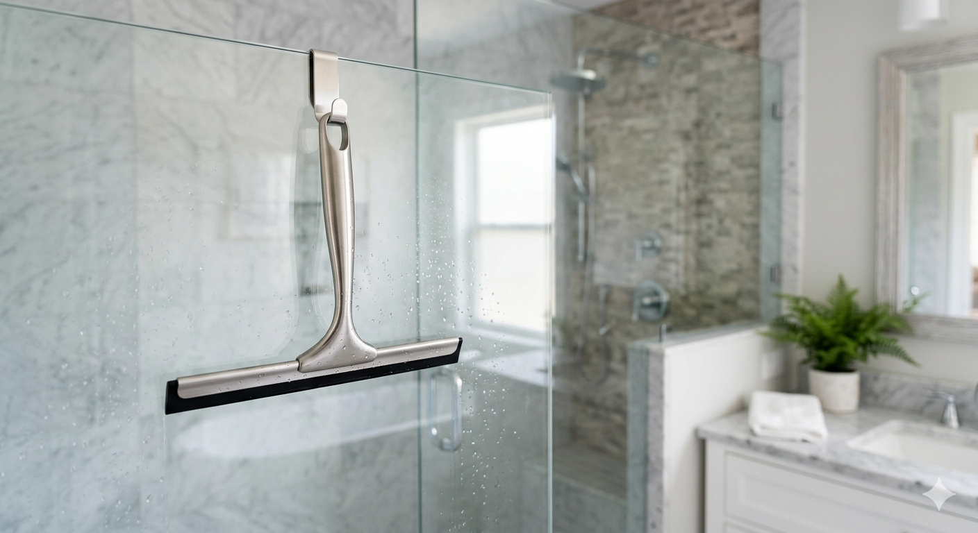 The Shower Squeegee for Glass Doors is a practical bathroom tool designed to keep shower glass clean and streak-free. Featuring a durable, water-resistant blade and an ergonomic handle, it easily removes water droplets, soap scum, and mineral deposits from glass surfaces. Its lightweight design allows for effortless daily use, while its sleek and compact form makes it easy to store or hang in the shower. Ideal for maintaining a sparkling, clear finish on shower doors, mirrors, and tiles, this squeegee helps prevent water stains and extends the life of glass surfaces.