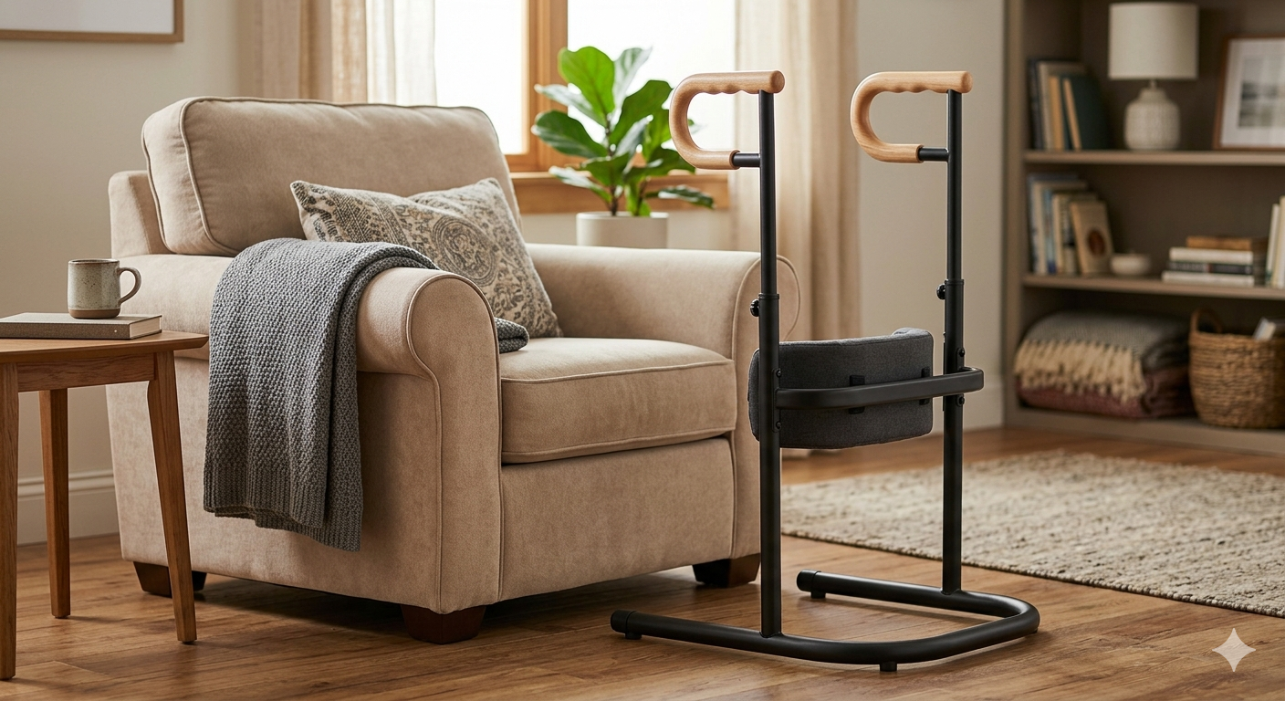 A stand assist aid for elderly chair and couch use is a practical support device designed to help seniors or individuals with limited mobility safely transition from sitting to standing. It typically features sturdy, non-slip handles that provide leverage and stability, reducing strain on knees and back while improving balance. The frame slides under cushions or attaches securely to most sofas and chairs, offering reliable support without requiring permanent installation. Many models include adjustable height settings, padded grips, and durable steel construction for long-lasting use. Ideal for home care, recovery after surgery, or daily independence, this standing aid enhances safety, confidence, and comfort during everyday movements.