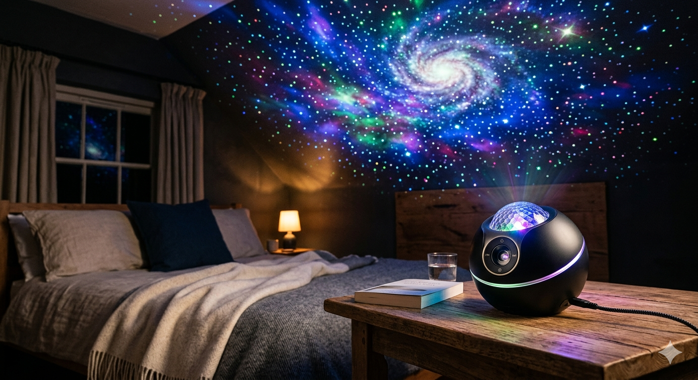 The Star Projector is a compact and versatile device that transforms any room into a mesmerizing night sky, projecting stars, galaxies, and nebulae across walls and ceilings. Equipped with adjustable brightness, rotation modes, and multiple color options, it creates a relaxing and immersive atmosphere perfect for bedrooms, parties, or meditation. Its easy-to-use controls and energy-efficient design make it suitable for both adults and children, providing a soothing ambiance or a decorative lighting effect that brings the beauty of the cosmos indoors.