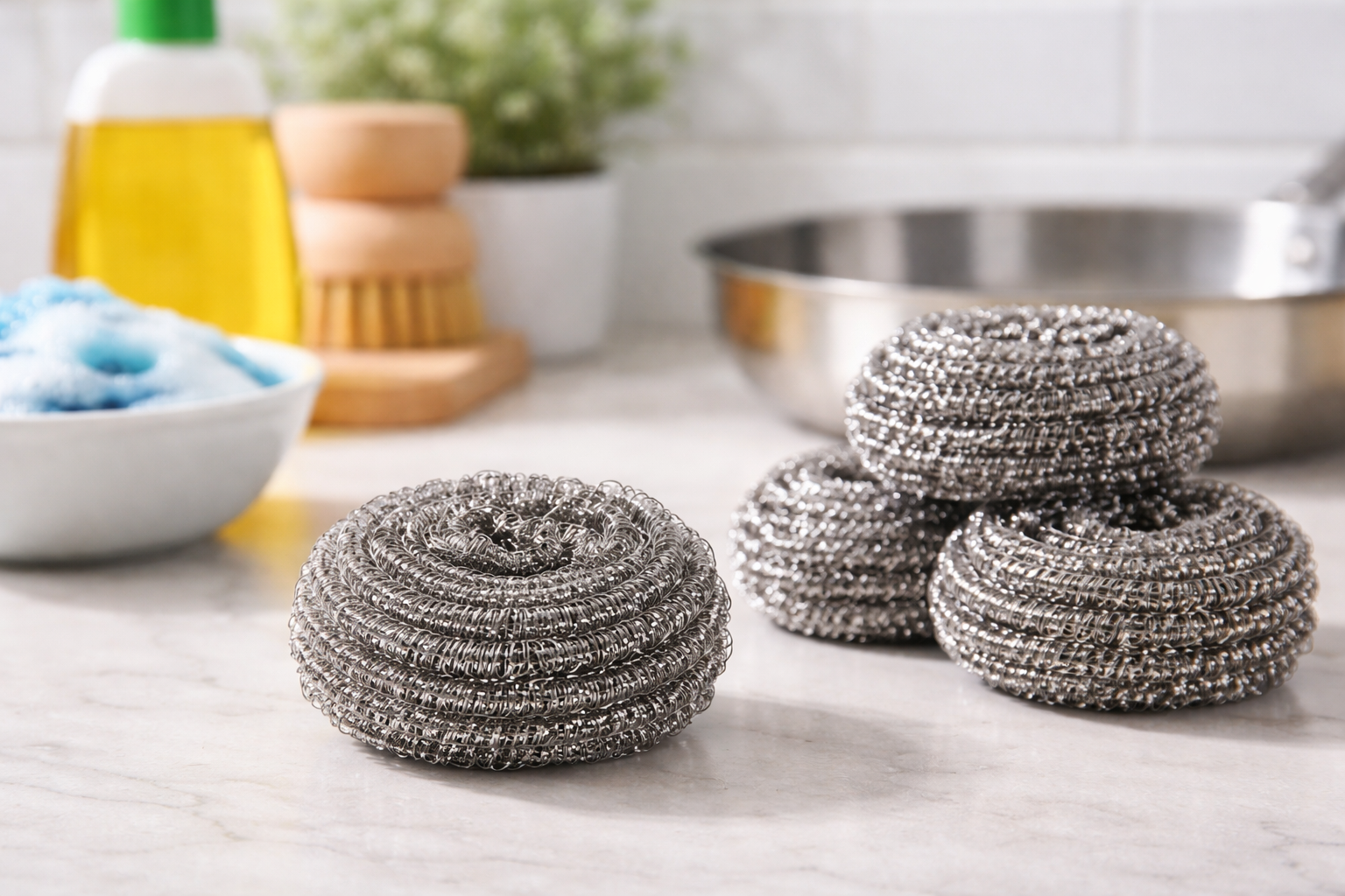 A steel wool scrubber is a heavy-duty cleaning tool made from tightly coiled steel fibers designed to remove stubborn grease, burnt food, rust, and hard stains from cookware and metal surfaces. It is especially effective on pots, pans, grills, and stovetops where ordinary sponges fail. Steel wool scrubbers come in different grades, with coarser types meant for tough cleaning tasks and finer ones for controlled scrubbing. Use it with caution, because it can easily scratch non-stick, polished, or delicate surfaces if misused.