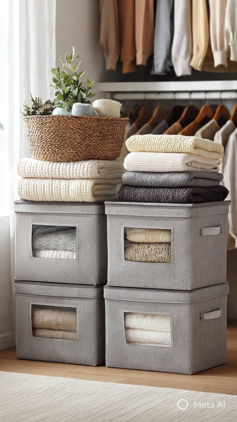 A 4-pack of large fabric storage bins with lids is a practical closet organizing solution that helps keep clothes, linens, toys, and seasonal items neatly stored and easy to find. Made from sturdy fabric with clear windows on the front, they let you see what’s inside without opening the lid, while built-in handles make lifting and moving them effortless. The snap-on lids keep dust out and help your shelves or under-bed space stay tidy. These bins are ideal for streamlining closets, bedrooms, garages, or craft rooms with a simple, flexible storage option that looks clean and organized.