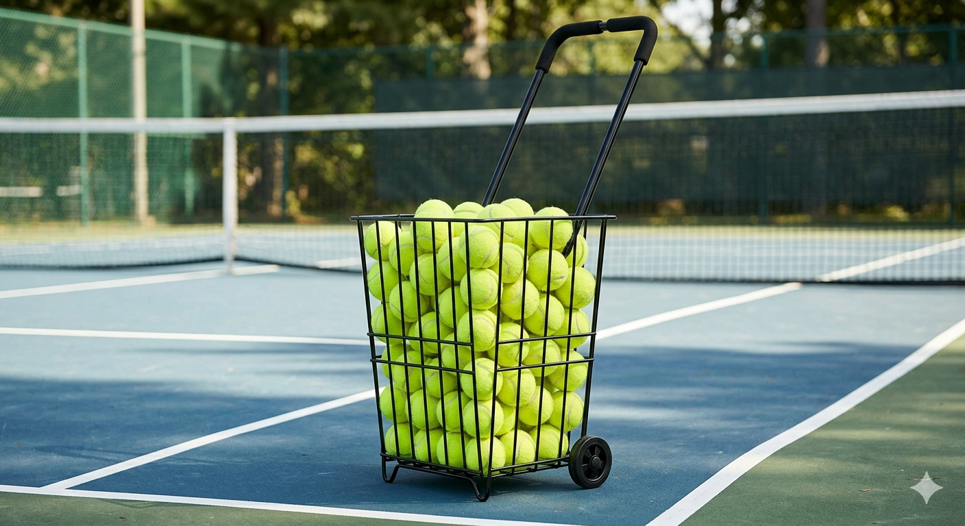 The Tennis Ball Hopper is a convenient and durable training accessory designed to store, carry, and dispense tennis balls with ease. Made from lightweight, high-quality materials, it features a spring-loaded mechanism that allows quick ball retrieval without bending, reducing strain during practice sessions. Its portable design, with a sturdy handle and stable base, makes it ideal for coaches, players, and clubs, streamlining drills and training routines while keeping courts organized and clutter-free.