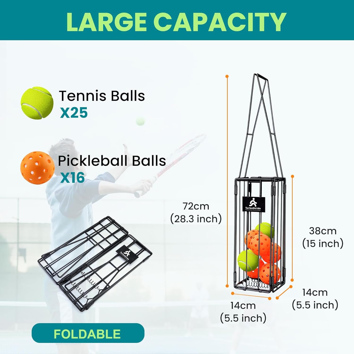 - MASSIVE CAPACITY TENNIS BALL HOPPER: Forget constant refills! This spacious basket comfortably holds up to 25 tennis balls or 16 pickleballs, making it ideal for efficient family practice or coaching sessions without the interruption