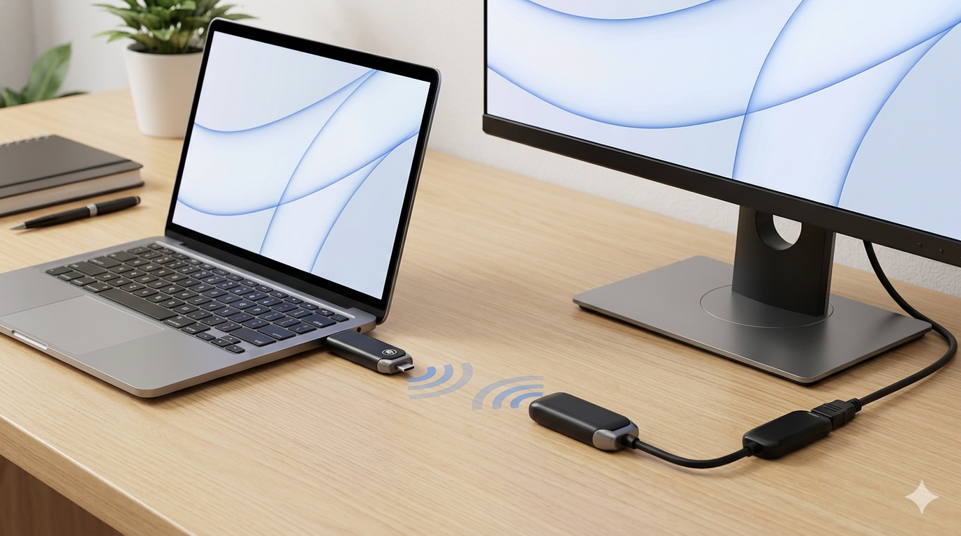 A Type-C Wireless HDMI Transmitter and Receiver lets you wirelessly mirror or extend your screen directly from USB-C devices to a TV, monitor, or projector without using cables. Simply plug the Type-C transmitter into your laptop, tablet, or smartphone, and connect the receiver to the display for instant plug-and-play streaming. It delivers stable, low-latency transmission with support for high-definition resolutions, making it ideal for presentations, gaming, video streaming, and office work. Designed with compact and portable hardware, it’s easy to carry and set up anywhere, while providing reliable audio and video synchronization. This Type-C wireless HDMI solution is perfect for creating a clean, clutter-free workspace and sharing content quickly and conveniently.