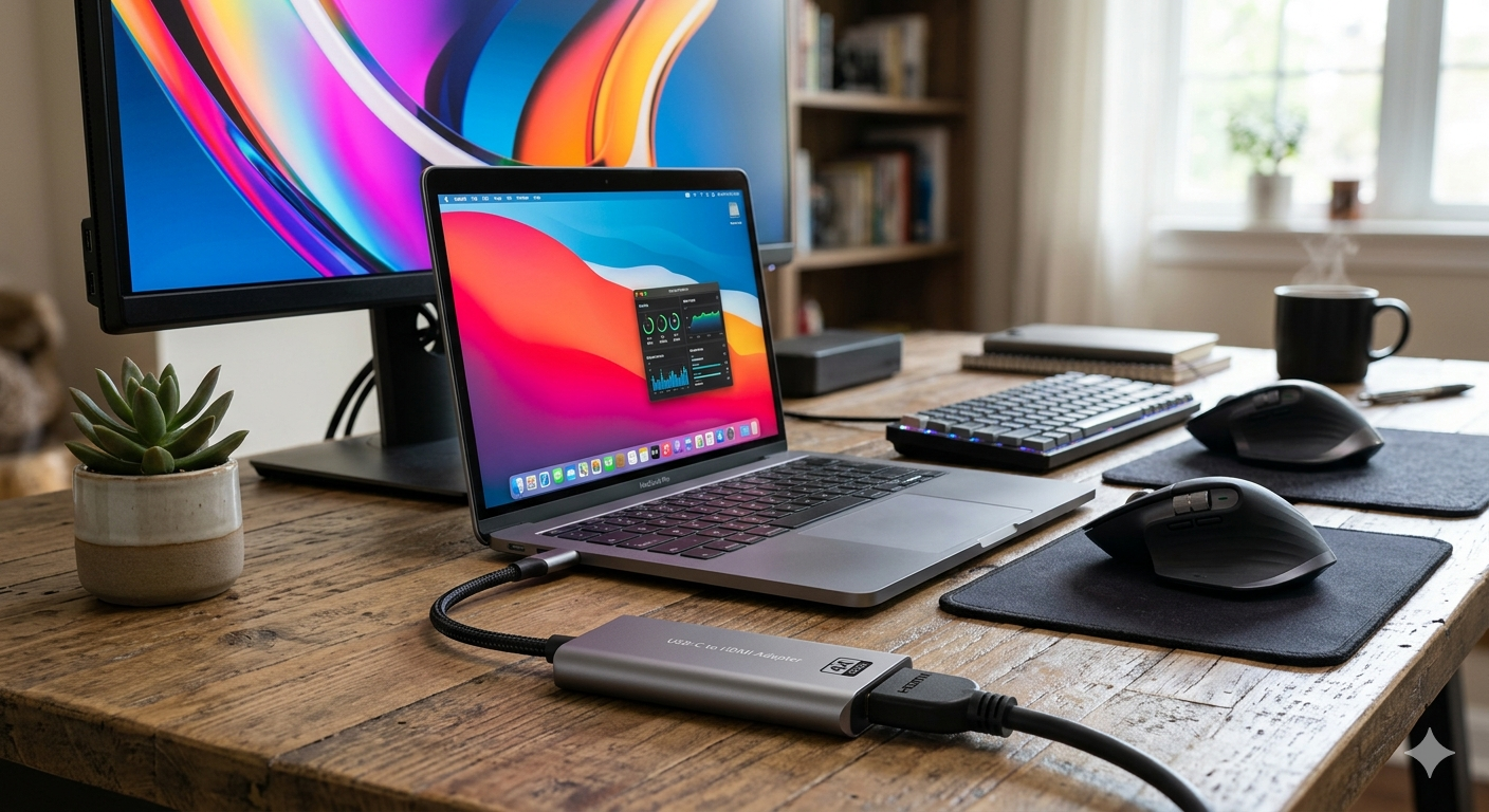 A USB-C to HDMI adapter allows you to connect devices with a USB-C port—such as laptops, tablets, or smartphones—to HDMI-enabled displays like TVs, monitors, or projectors. It supports high-definition video and audio transmission, often up to 4K resolution, ensuring clear visuals and crisp sound. Compact and plug-and-play, the adapter requires no additional drivers, making it ideal for presentations, streaming, gaming, or extending your workspace. Its durable design ensures stable connections, providing a reliable and convenient way to mirror or extend your device’s screen.