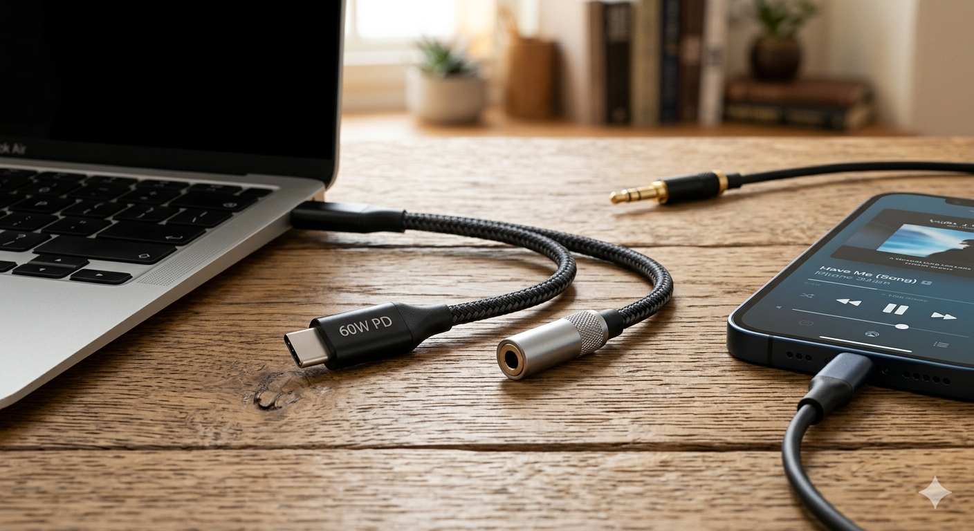 The USB-C to 3.5 mm Jack Adapter 60 W is a compact and reliable accessory that allows you to connect standard headphones, speakers, or audio devices to USB-C enabled smartphones, tablets, and laptops. Supporting high-quality audio transmission, it ensures clear sound without distortion while maintaining stable connectivity. Its 60 W power capacity also allows pass-through charging for compatible devices, so you can listen to music and charge simultaneously. Designed for durability and portability, the adapter is lightweight, easy to carry, and ideal for everyday use both at home and on the go.