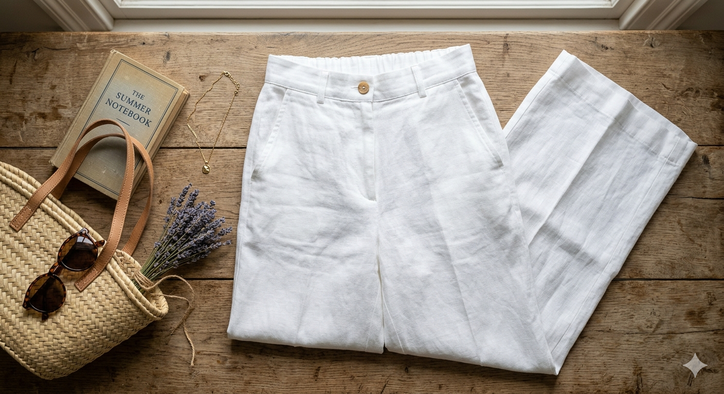 These women’s white linen trousers offer a perfect blend of comfort and style, crafted from lightweight, breathable linen ideal for warm weather. They feature a relaxed yet tailored fit with a straight or slightly tapered leg, a comfortable elastic or drawstring waistband, and subtle detailing such as side pockets or a minimal front closure. Versatile enough to dress up with a blouse and heels or keep casual with a tank top and sandals, these trousers provide an effortlessly chic and airy look for everyday wear or vacation-ready outfits.